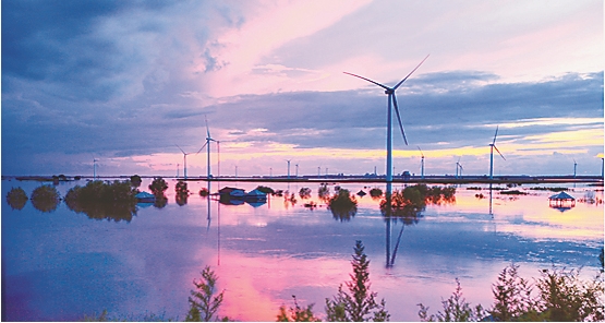 綏濱縣“平原風電之都”高聳旋轉(zhuǎn)的風車。