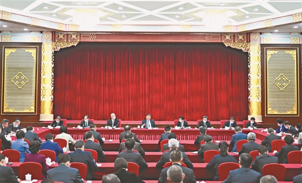 3月6日,中共中央總書記、國(guó)家主席、中央軍委主席習(xí)近平看望參加全國(guó)政協(xié)十四屆一次會(huì)議的民建、工商聯(lián)界委員,并參加聯(lián)組會(huì),聽取意見和建議。中共中央政治局常委、全國(guó)政協(xié)十四屆一次會(huì)議主席團(tuán)會(huì)議主持人王滬寧,中共中央政治局常委蔡奇、丁薛祥參加看望和討論。新華社記者 謝環(huán)馳攝