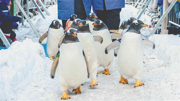 “我們就是專程為‘淘學企鵝’而來,能在哈爾濱看到全國僅有的企鵝冰雪巡游,真的不虛此行。”早在1年前,上海游客孟蕓就通過短視頻看到它們背著小書包打卡黑龍江美景的身影,成為妥妥的“鵝粉”。她說,為了能在前排近距離觀看,她更是早早就來到極地廣場等候。哈爾濱極地公園營銷部經(jīng)理崔美艷說,“淘學企鵝冰雪巡游”自啟動以來,每日引萬人打卡,成為今冬的爆款網(wǎng)紅活動,吸引全國游客來到哈爾濱看企鵝打卡拍攝,全網(wǎng)曝光量更是在25天的時間里突破了8.5億。
