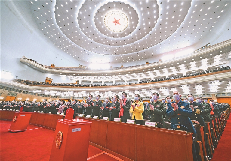 十四屆全國人大一次會(huì)議在北京人民大會(huì)堂舉行第三次全體會(huì)議