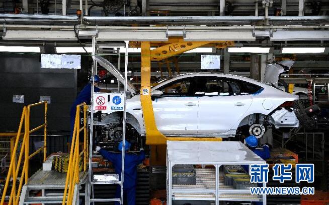 2022年4月20日,工作人員在西安比亞迪草堂工業(yè)園汽車總裝廠進行新能源汽車裝配。新華社記者 劉瀟 攝