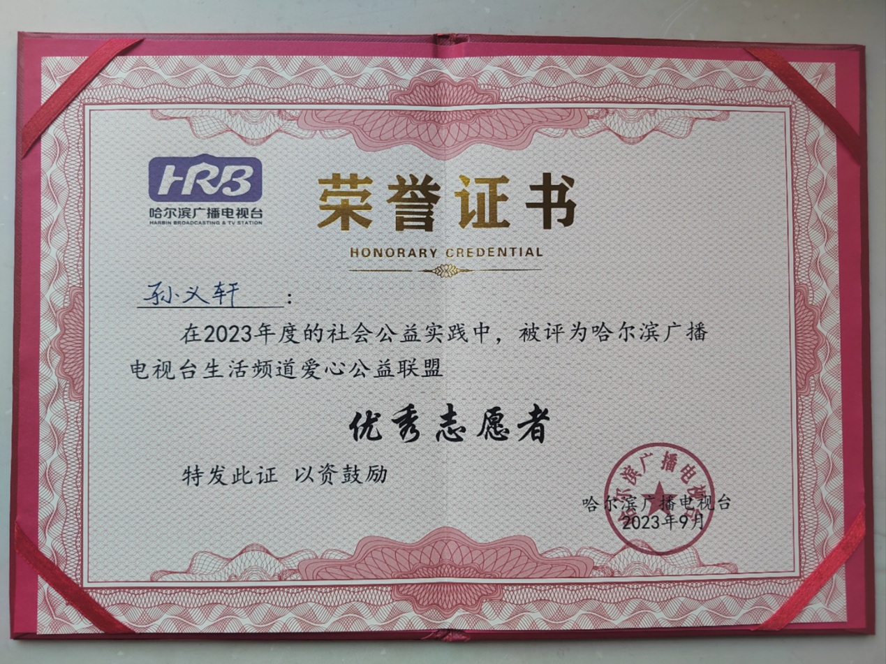 黑龍江經(jīng)濟(jì)網(wǎng)訊(楊東生)從2019年12月14日起累計(jì)參加志愿服務(wù)178小時(shí),學(xué)?!翱酆萌松谝涣?圩印眱?yōu)秀表演獎(jiǎng)獲得者,哈爾濱廣播電視臺(tái)生活頻道愛心公益聯(lián)盟優(yōu)秀志愿者,黑龍江省青少年發(fā)展基金會(huì)“我與小樹共成長(zhǎng)”參與者……他就是來(lái)自哈爾濱市江沿小學(xué)三年一班的孫義軒同學(xué)。