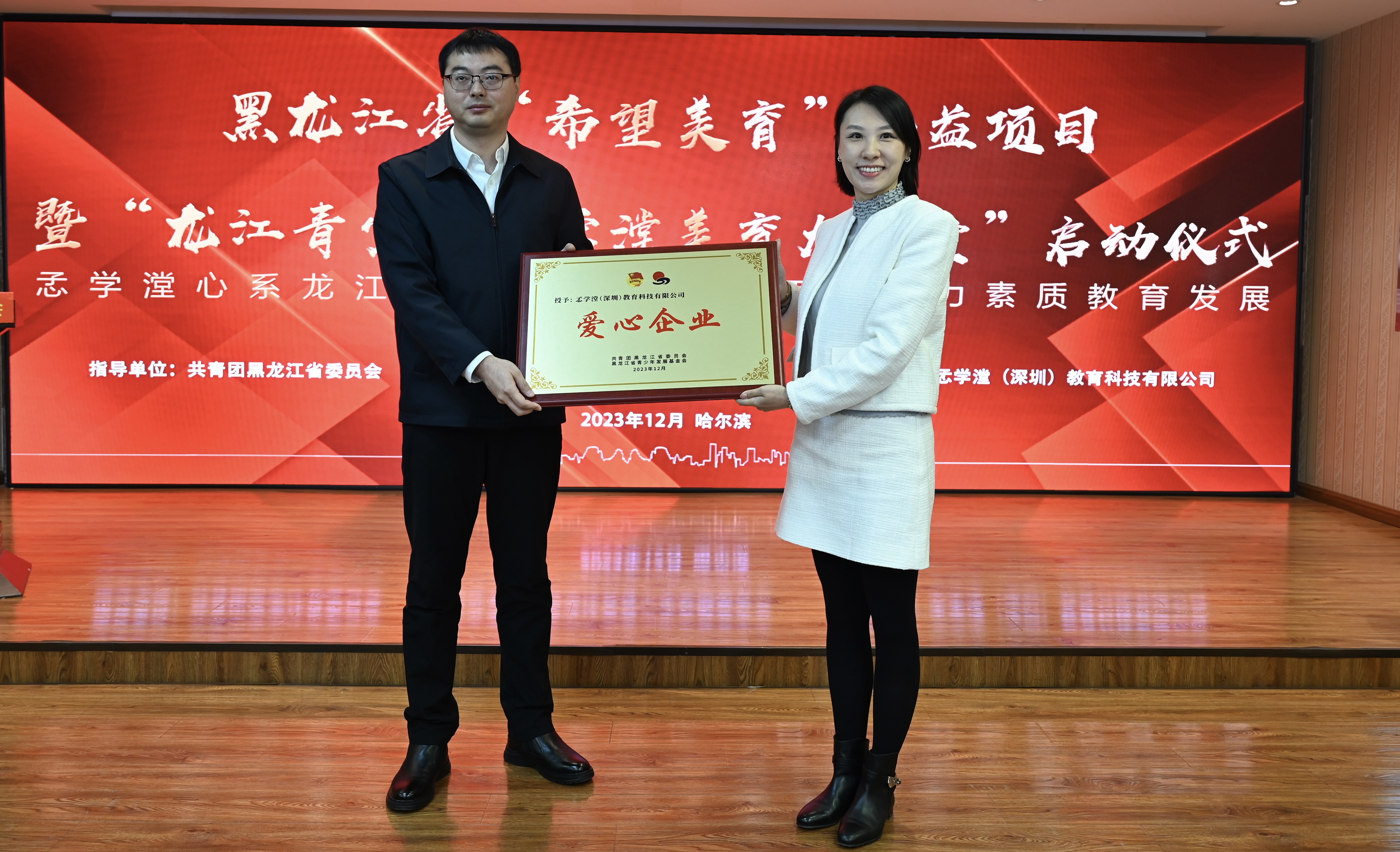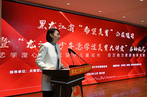 為深入貫徹習(xí)近平總書記對希望工程實(shí)施30周年的重要寄語精神,進(jìn)一步提升新時(shí)代希望工程的助學(xué)育人質(zhì)量,12月12日,黑龍江省“希望美育”公益項(xiàng)目暨“龍江青少年孞學(xué)漟美育大講堂”啟動(dòng)儀式在希望大廈舉行。黑龍江省文學(xué)藝術(shù)界聯(lián)合會(huì)一級巡視員張正明,共青團(tuán)黑龍江省委副書記代東力,黑龍江省青聯(lián)委員、深圳市孞學(xué)漟教育科技有限公司創(chuàng)始人楊梓杺,黑龍江省民政廳、黑龍江省青少年發(fā)展基金會(huì)等相關(guān)單位領(lǐng)導(dǎo),嘉仁公益、益家公益代表,伙伴計(jì)劃社區(qū)代表,哈爾濱市松北區(qū)樂業(yè)小學(xué)“童心港灣”代表,哈爾濱市蘇寧紅軍小學(xué)校、哈爾濱市合眾人壽希望小學(xué)、哈爾濱新區(qū)第三學(xué)校等學(xué)校師生代表參加活動(dòng)。