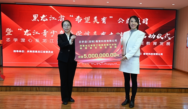 心系龍江留守兒童成長,百萬愛心助力“希望美育”。儀式上,孞學(xué)漟(深圳)教育科技有限公司向“希望工程素質(zhì)提升計(jì)劃”捐贈(zèng)價(jià)值500萬元美育融合課程,成為黑龍江省“希望美育”公益項(xiàng)目的首筆捐贈(zèng),黑龍江省希望工程捐助中心、黑龍江省青少年發(fā)展基金會(huì)與深圳市孞學(xué)漟教育科技有限公司將共同打造“龍江青少年孞學(xué)漟美育大講堂”系列公益課程。項(xiàng)目旨在為廣大鄉(xiāng)村美術(shù)教師與學(xué)生提供更為直觀和便捷的專業(yè)化美術(shù)指導(dǎo),提升學(xué)生對美的認(rèn)知和感受能力,培養(yǎng)學(xué)生的創(chuàng)造力和想象力,幫助鄉(xiāng)村青少年陶冶高尚情操、塑造美好心靈,實(shí)現(xiàn)全面發(fā)展。此次合作將連續(xù)實(shí)施5年,助力萬名龍江學(xué)子“發(fā)現(xiàn)生活中的美”。