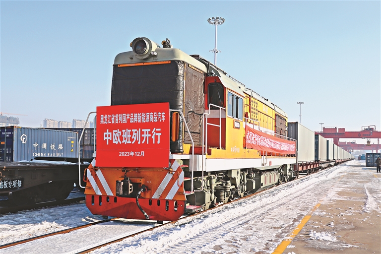 本報18日訊(記者 王迪)18日,一列滿載55個集裝箱110臺新能源商品汽車的中歐班列,從哈爾濱國際集裝箱中心站駛出,經同江鐵路口岸駛向歐洲。這是今年我省繼開通國產商品汽車、二手車中歐班列線路后,新開通的又一條國產新能源商品汽車中歐班列線路。