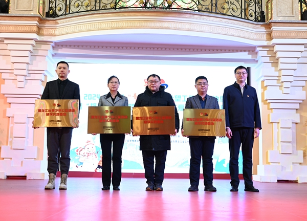 “我們?cè)诜鼱柤忧f園祝大家新春快樂,龍年大吉!”開營(yíng)儀式上,領(lǐng)導(dǎo)嘉賓為40名雙鴨山“小黃鴨”發(fā)放由聯(lián)想(北京)有限公司、黑龍江飛鶴乳業(yè)有限公司、黑龍江省明悅網(wǎng)絡(luò)科技有限公司捐贈(zèng)的科技禮包、暖冬禮包、新春禮包。這份用愛填滿的禮物是對(duì)孩子們的祝福和對(duì)未來的美好期許,希望孩子們能夠度過一個(gè)愉快、祥和的新春佳節(jié)。哈爾濱學(xué)生代表與雙鴨山“小黃鴨”互換親手制作的手工藝品和精心準(zhǔn)備的禮物,手牽手、心連心,這正是希望與愛手拉手研學(xué)項(xiàng)目的意義,結(jié)下的是孩子們的深厚情誼,鏈接的是希望與愛。