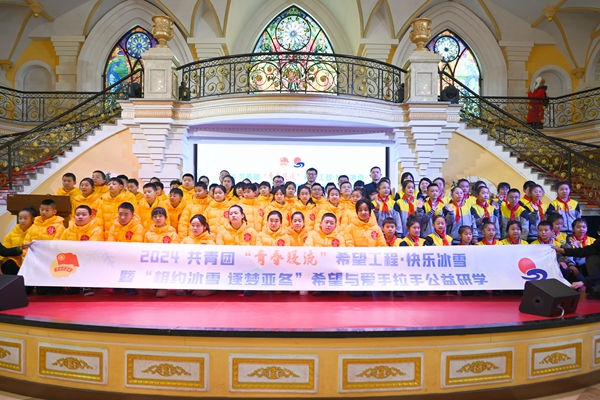 黑龍江經(jīng)濟(jì)網(wǎng)訊(于佳弘 記者祝東)1月15日,2024共青團(tuán)“青春暖流”希望工程·快樂冰雪暨“相約冰雪 逐夢(mèng)亞冬”希望與愛手拉手公益研學(xué)正式開營(yíng)?;顒?dòng)由中國(guó)青少年發(fā)展基金會(huì)、共青團(tuán)黑龍江省委員會(huì)指導(dǎo),黑龍江省青少年發(fā)展基金會(huì)、黑龍江省學(xué)生聯(lián)合會(huì)、少先隊(duì)黑龍江省工作委員會(huì)主辦,并得到了哈爾濱工程大學(xué)、哈爾濱工業(yè)大學(xué)教育發(fā)展基金會(huì)、黑龍江飛鶴乳業(yè)有限公司、哈爾濱伏爾加莊園文化旅游有限公司、哈爾濱市太陽(yáng)島風(fēng)景區(qū)資產(chǎn)有限公司、黑龍江龍塔國(guó)際旅游有限公司、聯(lián)想(北京)有限公司、黑龍江省明悅網(wǎng)絡(luò)科技有限公司的大力支持。共青團(tuán)黑龍江省委副書記代東力,黑龍江省飛鶴慈善基金會(huì)秘書長(zhǎng)蘭天偉,哈爾濱工程大學(xué)團(tuán)委書記、本科生院黨委書記郝琛,共青團(tuán)雙鴨山市委書記薛麗偉,黑龍江省青少年發(fā)展基金會(huì)理事長(zhǎng)杜晶等領(lǐng)導(dǎo)嘉賓出席活動(dòng),雙鴨山“小黃鴨”與帶隊(duì)教師、公安干警、龍江小記者、哈爾濱學(xué)生代表共計(jì)百余人參加活動(dòng)。