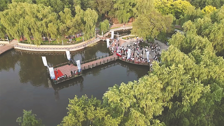 黛秀湖公園里香坊區(qū)職工歌手大賽舞臺。