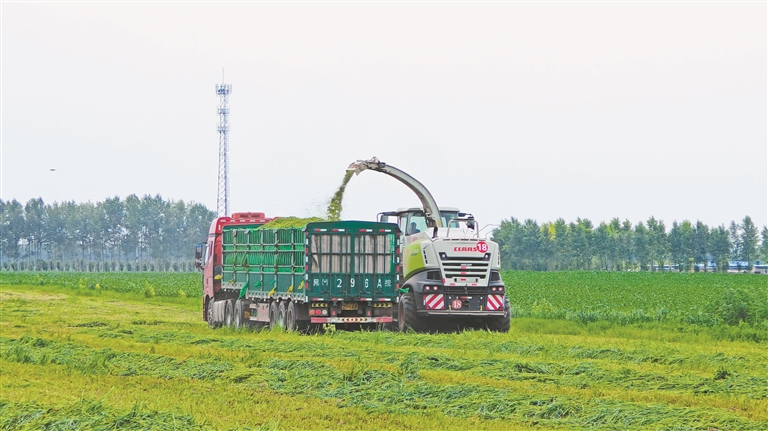 盛夏時節(jié),走進安達市老虎崗鎮(zhèn)永和村的大麥飼草復種大豆試驗示范田,一粒粒大豆種子伴著播種機的轟鳴聲落地,地頭另一側則堆著即將裝車的大麥飼草。