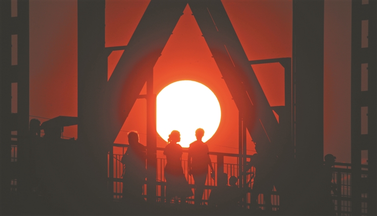 雖然入伏了,但哈爾濱市百年老橋?yàn)I洲鐵路橋上江風(fēng)習(xí)習(xí)、清爽宜人。無(wú)論白天還是晚上,都有市民和來(lái)自天南海北的游客來(lái)此打卡拍照、觀賞美景、沐浴清涼。