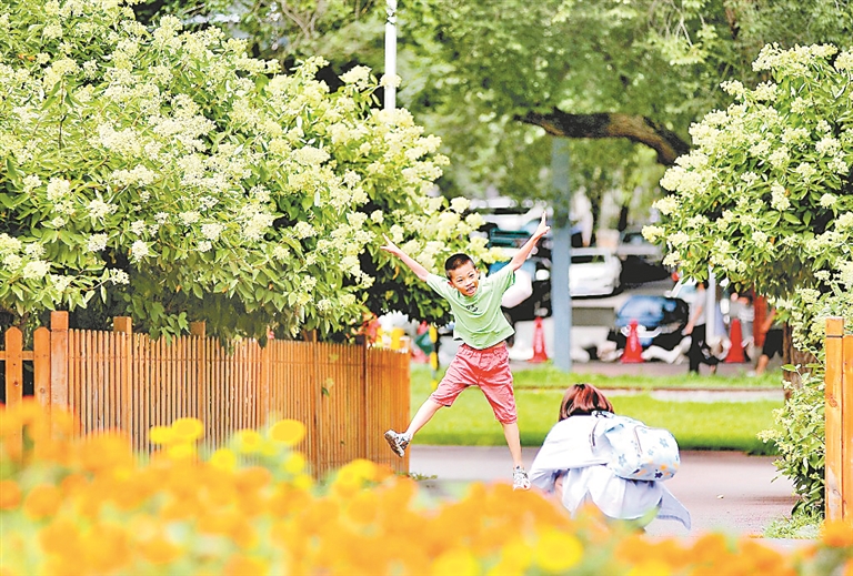 29日,哈爾濱市兒童公園內(nèi),數(shù)十株圓錐繡球正陸續(xù)開花。這些美麗的花朵為夏日冰城再添一道風(fēng)景,吸引了許多游客前來觀看、拍照。