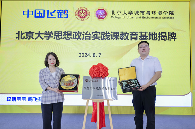 飛鶴乳業(yè)黨委副書(shū)記李玉蘋(píng)與北京大學(xué)城環(huán)學(xué)院副書(shū)記金鑫共同為北京大學(xué)思想政治實(shí)踐課教育基地揭牌