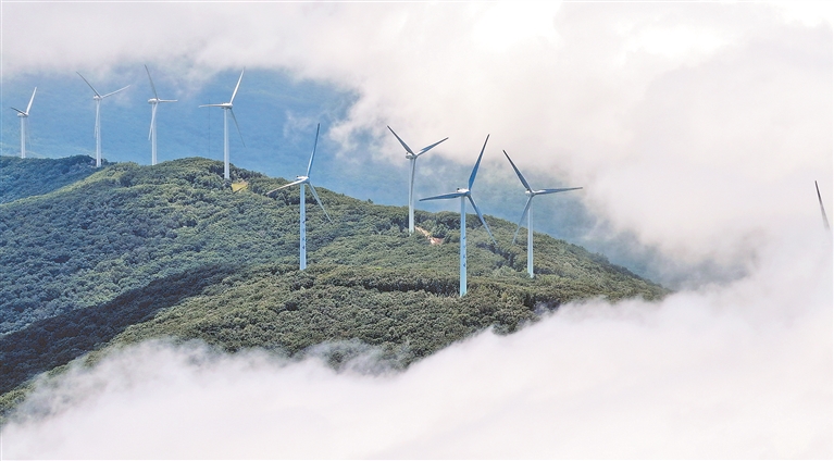 近日,饒河縣大頂子山森林公園頻現(xiàn)云海美景。清晨,海拔801米的大山被密密的白云遮擋得嚴(yán)嚴(yán)實(shí)實(shí),透過云隙,偶爾會看到幾座巨大的風(fēng)機(jī)在山脊上迎風(fēng)轉(zhuǎn)動。不經(jīng)意間,濃云消散,藍(lán)天如洗,朵朵白云飄過山頭,將《烏蘇里船歌》中“白云飄過大頂子山”的場景演繹得活靈活現(xiàn)。站在山頂上,一望無際的三江沃野和烏蘇里江“一水東西分兩國”壯闊美景盡收眼底。