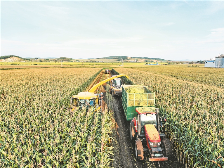 青貯玉米是八五一一農(nóng)場(chǎng)有限公司2.4萬(wàn)頭奶牛越冬的重要口糧。經(jīng)過切碎、加工后,發(fā)酵制作成青貯飼料的玉米干物質(zhì)淀粉含量高、營(yíng)養(yǎng)好,是公認(rèn)的優(yōu)質(zhì)飼料。青貯玉米既為奶牛提供了優(yōu)質(zhì)口糧,又減少了因焚燒玉米秸稈帶來的環(huán)境污染,為各牧場(chǎng)增收奠定了基礎(chǔ),更實(shí)現(xiàn)了畜牧業(yè)綠色低碳高質(zhì)量發(fā)展。
