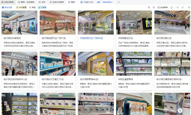 線下巡店工作能最大程度保障各終端貨品銷售質(zhì)量。過去,由于巡店工作涉及外出出差,巡店照片數(shù)據(jù)手機端無法操作整理匯總,影響問題處理時效且增加無用工作量?,F(xiàn)在敷爾佳運用飛書表單移動端操作,隨時上傳巡店結(jié)果及照片,表格儀表盤視角可以查看數(shù)據(jù)并進行一段時間內(nèi)的環(huán)比、同比分析,基于數(shù)據(jù)分析做任務下達,一次巡檢從發(fā)現(xiàn)問題到整改問題的全流程都能包攬,對于每位巡檢員來說,每天至少節(jié)省2.5小時數(shù)據(jù)統(tǒng)計時間,同時更清晰的了解每個督導的外出工作情況 。此外,查貨溯源沒有系統(tǒng)的數(shù)據(jù)存檔,多個渠道數(shù)據(jù)無法同步,無數(shù)個sheet篩選查詢數(shù)據(jù),容易出錯?,F(xiàn)在,運用多維表格協(xié)同操作,多個維度查看所需數(shù)據(jù),所有查貨情況能被沉淀和實時查看。
