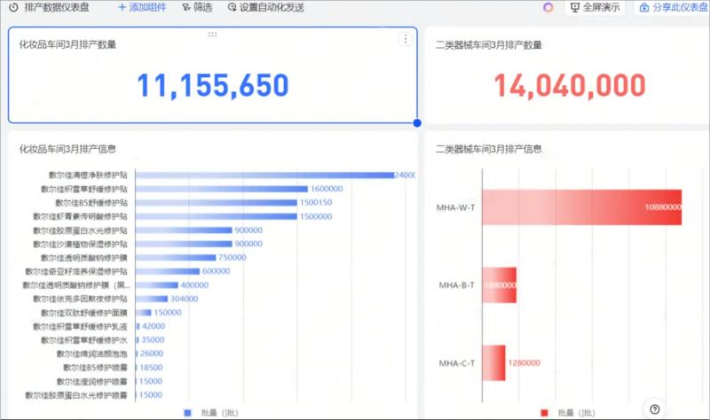 過去,敷爾佳生產(chǎn)計劃專員需制定多個生產(chǎn)車間生產(chǎn)排產(chǎn)計劃、并進行生產(chǎn)進度跟蹤,針對每個車間相應的共享Excel并分別設置密碼權(quán)限,表格繁多導致操作不便,查詢信息時需要在每個相應鏈接點擊并輸入密碼進入。現(xiàn)在通過運用飛書的多維表格,公共日歷等功能,生產(chǎn)計劃專員可以更清晰、明了的了解各車間產(chǎn)品排產(chǎn)信息。
