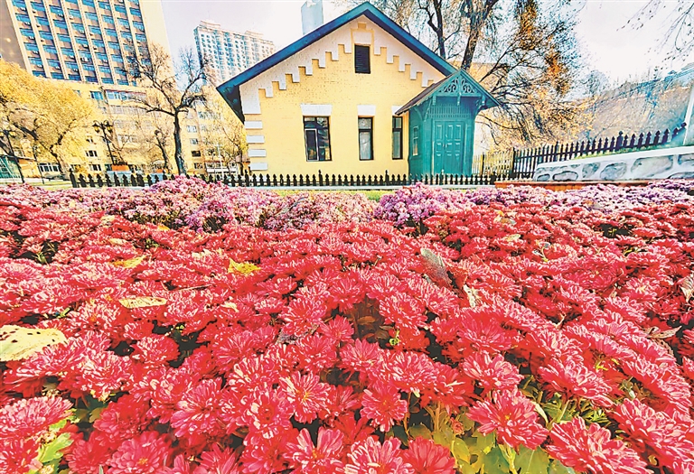 近日,哈爾濱市南崗區(qū)花園街旁,游客在修繕一新的“黃房子”前拍照留念。在滿地落葉襯托下,這些黃墻紅頂?shù)臍v史建筑更顯厚重感。房子周圍設(shè)有休閑座椅、歐式路燈、花壇、綠地等,方便人們散步、賞景。本報記者 蘇強(qiáng)攝