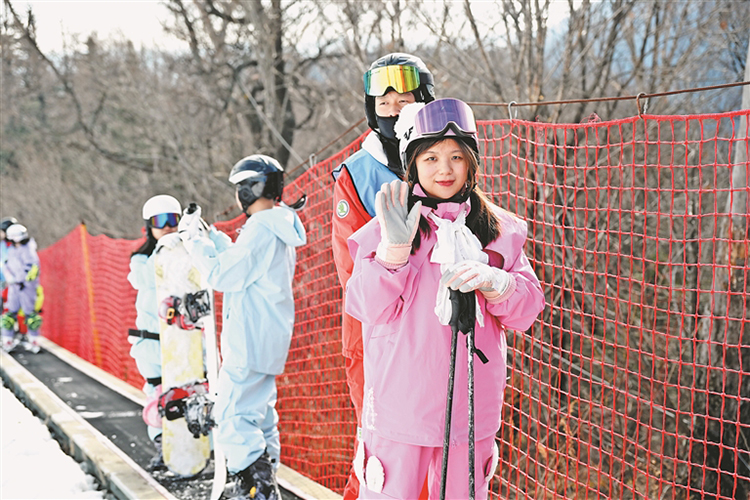 在亞布力陽光度假村山頂滑雪場(chǎng),來自南方的游客盡情陶醉在滑雪的樂趣中。本報(bào)記者 郭俊峰攝