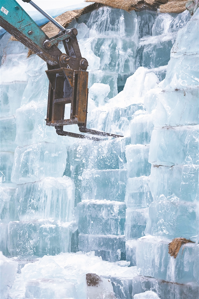 為保證冰建景觀的“高顏值”,這些存冰在啟用后,要先送往驗(yàn)冰場接受檢查,檢查冰體的厚度、長度、完整度和潔凈度,只有品相好、品質(zhì)佳并符合建筑要求標(biāo)準(zhǔn)的合格冰體,才能進(jìn)入園區(qū)用于景觀建設(shè)。
