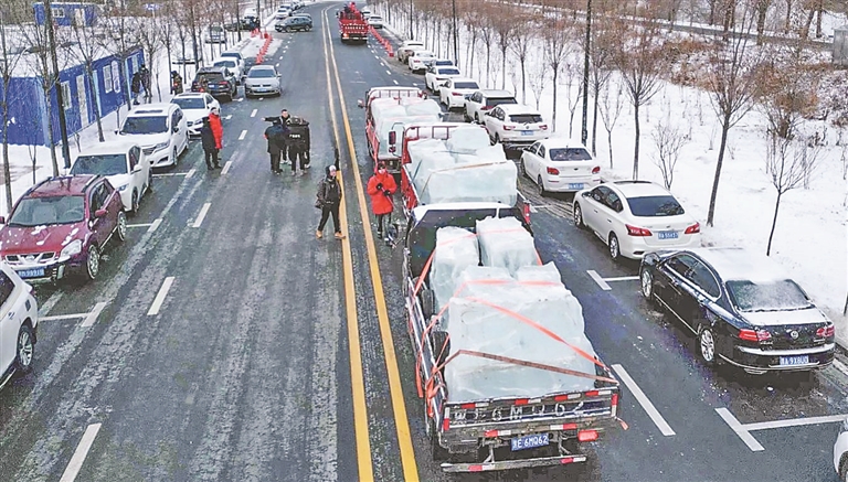 運(yùn)送存冰。哈爾濱冰雪大世界提供