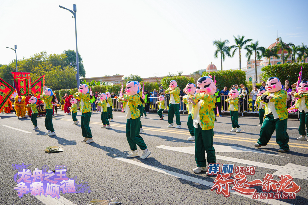 解鎖龍文化,體驗新玩法;打造新民俗,巡游好歡樂。“行運一條龍”祈福巡游活動是順德全新打造的龍舟文化新民俗,現(xiàn)已成功舉辦兩屆。巡游以“拜龍母”“龍眼點睛”等民俗儀式為核心,凝練“行龍運,接龍?!钡脑⒁?,讓市民游客近距離感受民俗活動的獨特魅力。