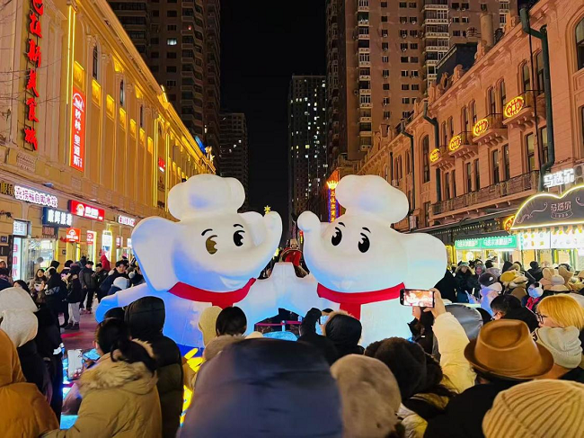除了“白象”標志性小象IP格外吸睛之外,因其與“對象”諧音的巧妙設(shè)計,也吸引著往來行人紛紛駐足。雪雕前人潮涌動,不少市民游客在“對象”前合影留念。這一創(chuàng)意不僅為游客增添別樣的溫暖與歡樂,也在社交媒體掀起一陣“找對象”的熱潮?;顒悠陂g,“對象雪雕走紅哈爾濱”的話題登上熱搜榜。不少網(wǎng)友調(diào)侃:“這就去哈爾濱找對象。”也有人表示,看完小象雪雕,感覺爾濱的冬天都充滿了浪漫的氣息。