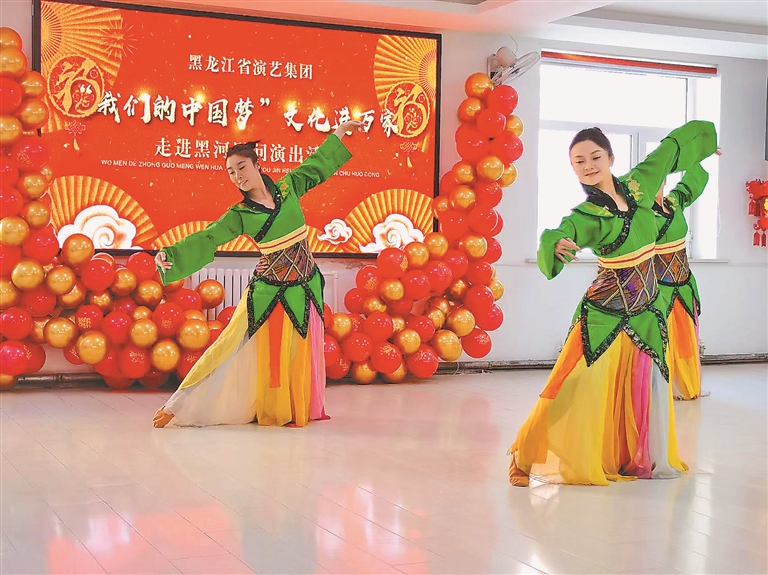 本報(bào)21日訊(王靜鉬 記者 邵晶巖)21日,省演藝集團(tuán)演職人員深入黑河愛輝區(qū)四個(gè)社區(qū)開展“我們的中國夢”文化進(jìn)萬家——走進(jìn)黑河活動(dòng),以群眾喜聞樂見的形式,為群眾送來精彩的文藝演出和新春祝福。