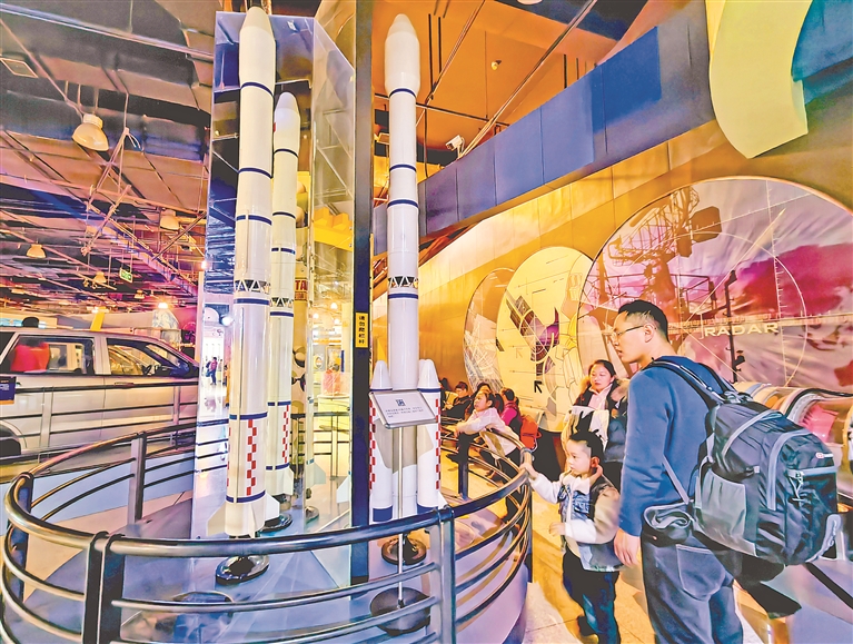 2日,省科技館內(nèi),許多家長(zhǎng)帶著孩子前來參觀。