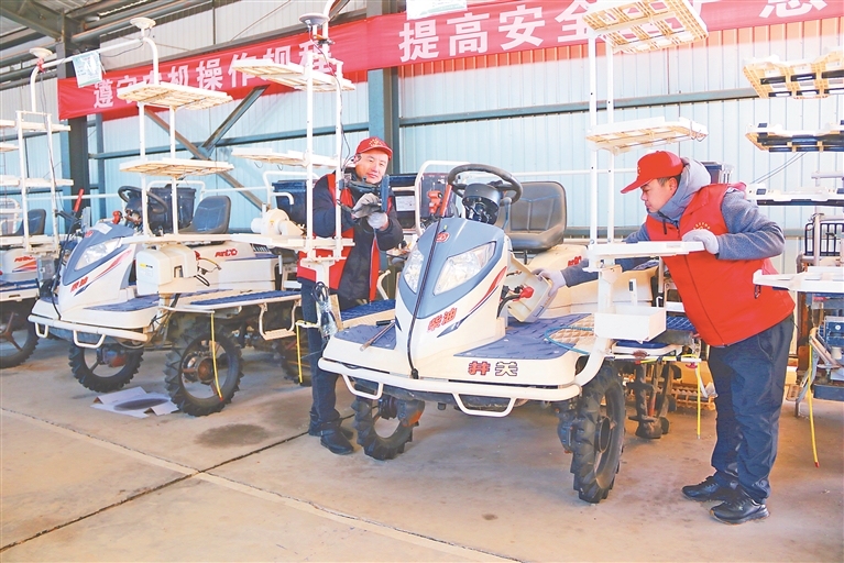 檢修農(nóng)機(jī)。 高翔攝