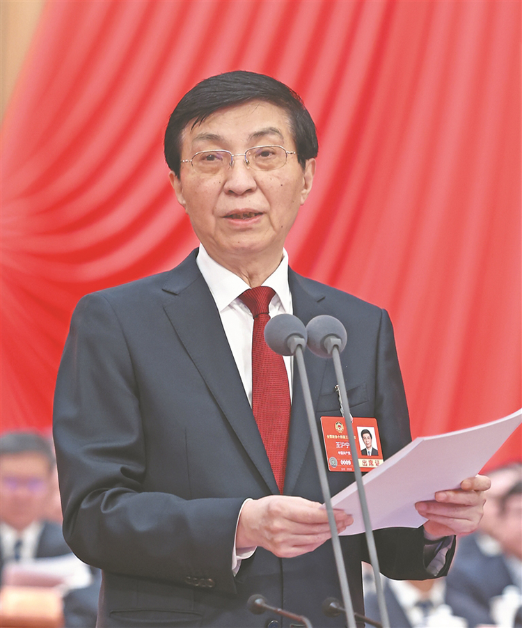 全國政協(xié)主席王滬寧主持閉幕會并講話。 新華社記者 劉衛(wèi)兵攝