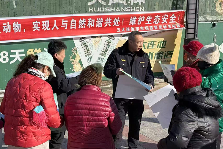 城關(guān)監(jiān)管所執(zhí)法人員在五大連池市鑫瑞廣場開展禁止非法捕獵野生動(dòng)物宣傳活動(dòng)(王力 攝)