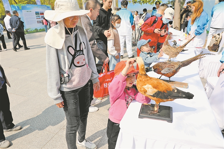 活動現(xiàn)場,野生動物保護志愿者和高校大學(xué)生代表分別發(fā)起愛鳥護鳥倡議和宣言,播放了鳥類保護宣傳片,通過優(yōu)秀巡護員的經(jīng)驗分享,以及各類標本展示、宣傳展板等方式向公眾宣傳保護鳥類的知識和相關(guān)法律法規(guī)。