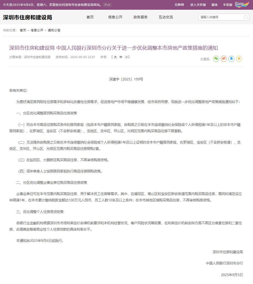為進一步滿足居民住房需求,促進房地產(chǎn)市場平穩(wěn)健康發(fā)展,深圳市自2025年9月6日起優(yōu)化調(diào)整房地產(chǎn)政策,鹽田區(qū)、大鵬新區(qū)購買商品住房不再審核購房資格,其他部分區(qū)域也大幅放寬限購條件。