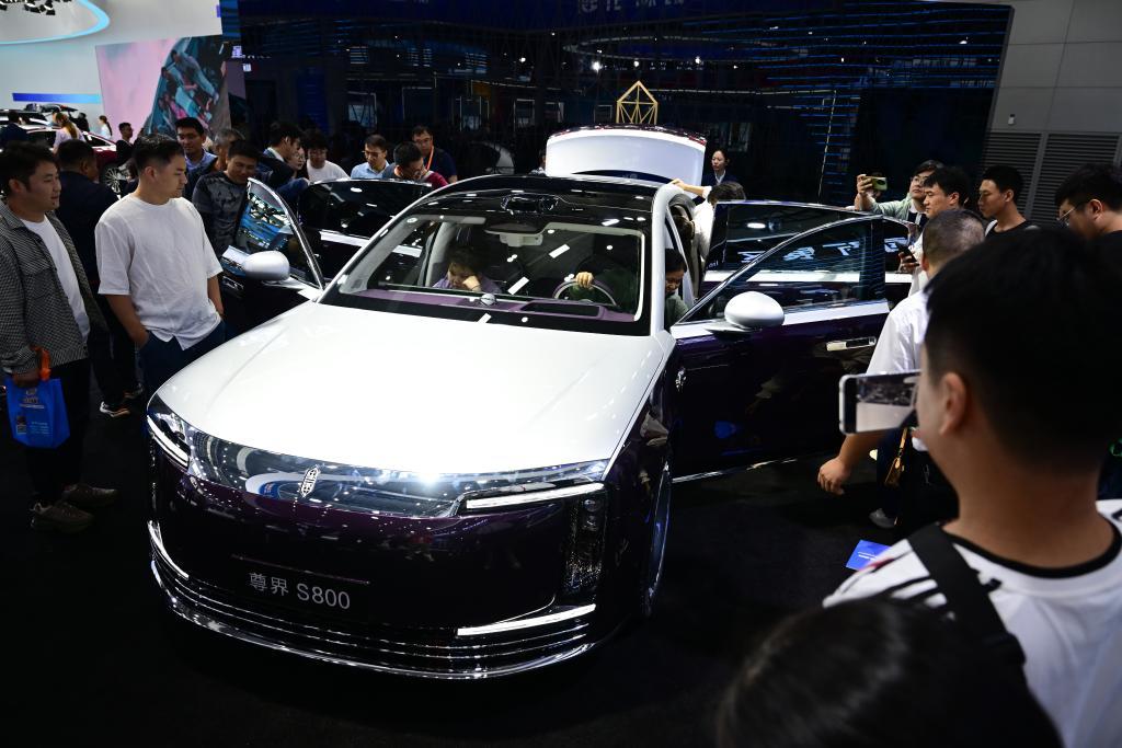 9月20日,觀眾在2025世界制造業(yè)大會(huì)上參觀體驗(yàn)一款新能源汽車。新華社記者 周牧 攝