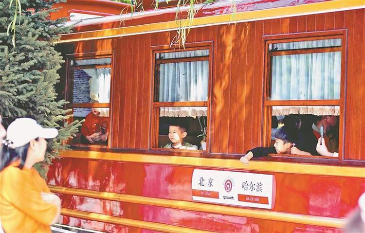 2日,在哈爾濱市兒童公園內(nèi),許多家長(zhǎng)帶著孩子坐上小火車(chē),一路歡笑地觀(guān)賞鐵軌沿線(xiàn)的美麗秋色。本報(bào)記者 蘇強(qiáng)攝