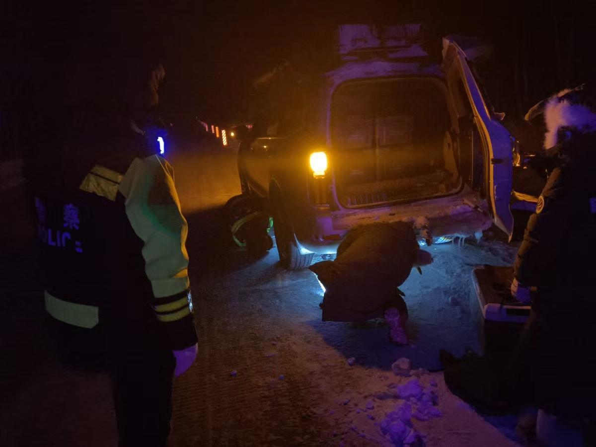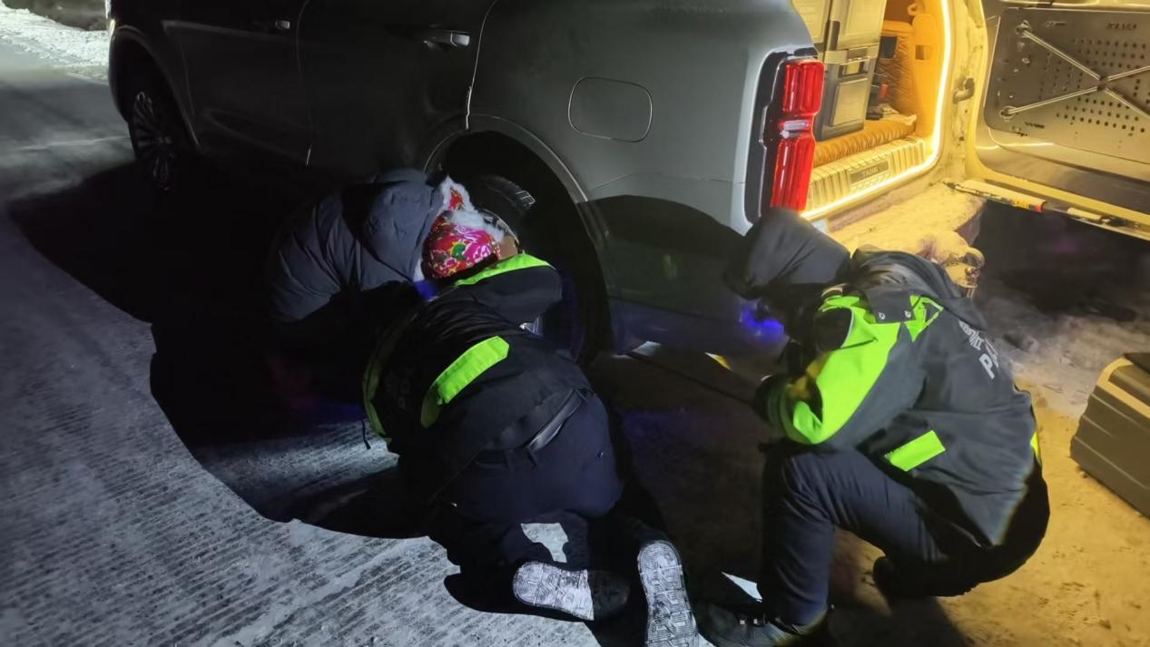 黑龍江經(jīng)濟(jì)網(wǎng)訊(婁暢)近日,呼瑪縣轄區(qū)強(qiáng)降溫、降雪伴隨大風(fēng)天氣,給道路通行帶來(lái)極大安全隱患,呼瑪縣公安局民輔警按照惡劣天氣應(yīng)急處置預(yù)案開(kāi)展巡邏防控,將巡邏管控與便民服務(wù)相結(jié)合,及時(shí)為群眾解決出行難題。12月25日晚,民輔警巡邏中及時(shí)救助一臺(tái)爆胎車輛。
