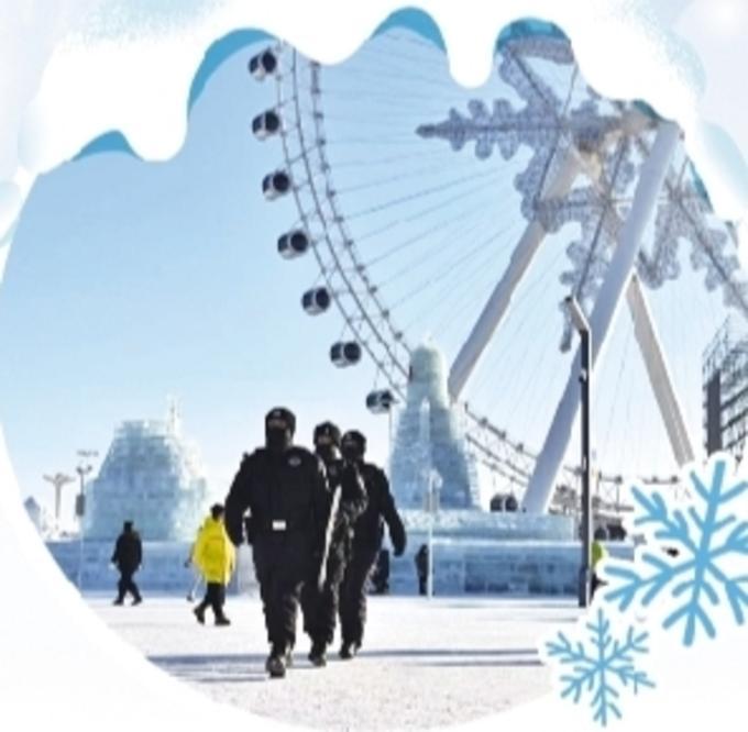 新年伊始,黑龍江省哈爾濱市氣溫降至零下20攝氏度,“哈氣成冰”在這里更加具象化了。在冰雪大世界園區(qū)內(nèi),各種各樣的冰雕建筑云集,氣溫比市區(qū)更低。“雪花摩天輪”上流動著光暈,數(shù)萬名游客的歡呼聲在冰雕叢林中回蕩。涌動的人潮中,一抹抹藏藍身影用默默付出,守護著這份冬日里的熱烈與祥和。
