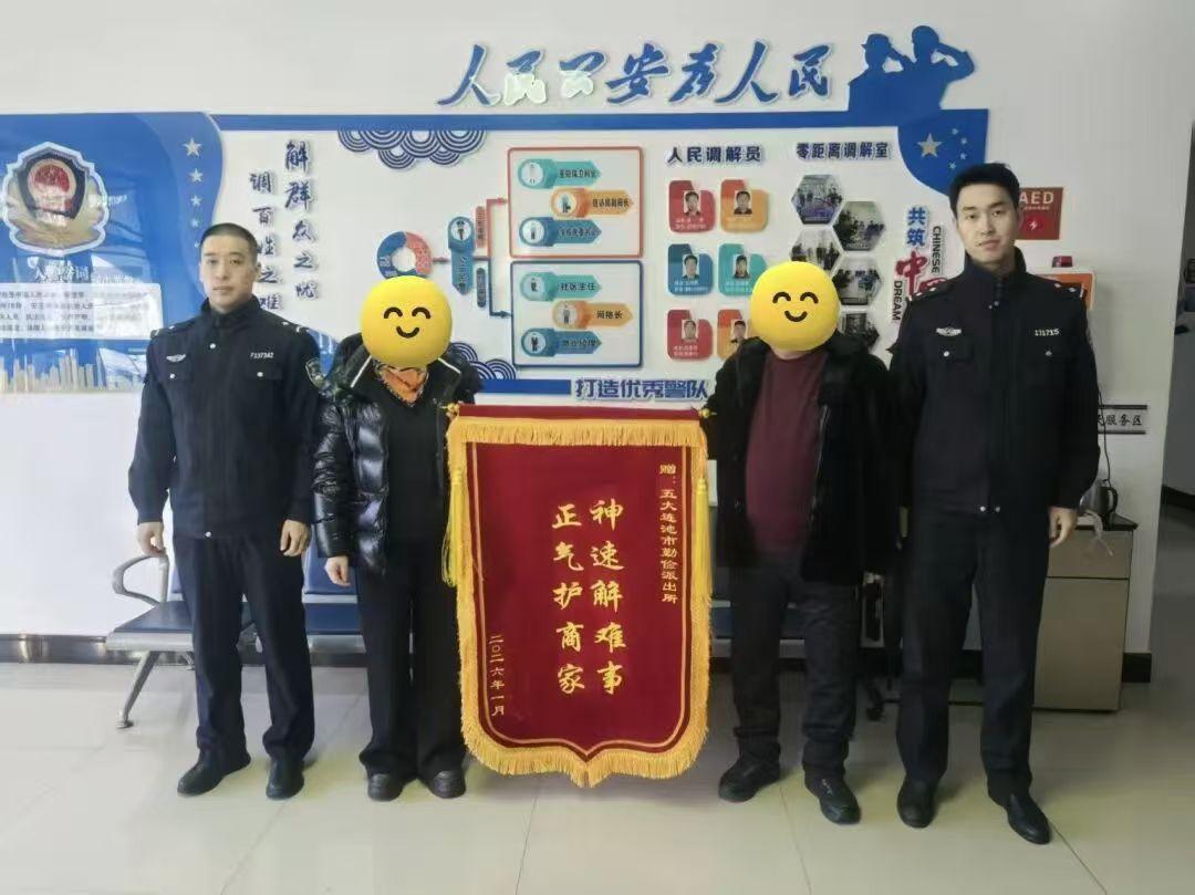 最終,在民警的悉心調(diào)解與事實(shí)澄清下,老人認(rèn)識到是自己酒后情緒激動產(chǎn)生了誤會,主動向店家表達(dá)了歉意,店家也對老人行為表示諒解,雙方握手言和。事后,店主向派出所贈送錦旗表達(dá)謝意。