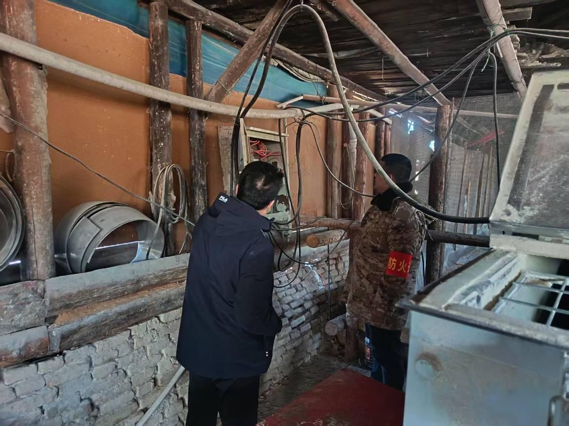 排查過程中,工作人員深入一線、全域摸排,重點(diǎn)覆蓋場區(qū)住戶、管護(hù)站、辦公區(qū)、養(yǎng)殖戶等關(guān)鍵區(qū)域。在場區(qū)住戶和辦公區(qū),細(xì)致排查用電線路、取暖設(shè)施、燃?xì)馐褂玫入[患,檢查消防器材配備及有效性,杜絕線路老化、私拉亂接、易燃物堆放等問題;在養(yǎng)殖戶區(qū)域,重點(diǎn)核查飼草堆放、飼料加工區(qū)防火措施,現(xiàn)場簽訂防火責(zé)任告知書,提醒養(yǎng)殖戶規(guī)范用火用電。此外,同步排查倉庫、物資儲(chǔ)備點(diǎn)等重點(diǎn)部位,確保排查不留死角、不漏盲區(qū)。
