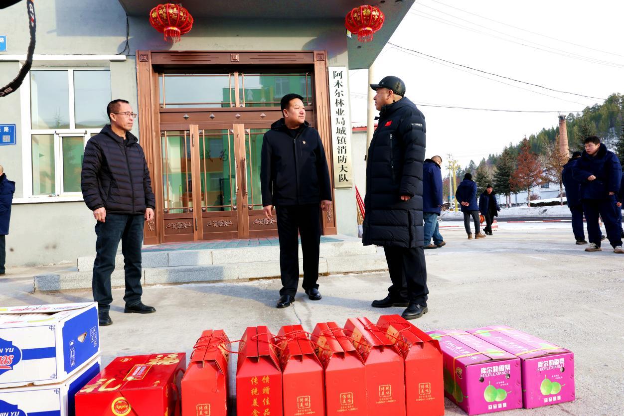 黑龍江經(jīng)濟(jì)網(wǎng)訊(王力)除夕佳節(jié),萬家團(tuán)圓。2月16日,阿木爾林業(yè)局黨委委員、工會(huì)主席胡長清,林業(yè)局副局長孫乃彬帶隊(duì),帶著精心準(zhǔn)備的慰問品,先后前往城鎮(zhèn)消防大隊(duì)、環(huán)衛(wèi)隊(duì)、物業(yè)公司、阿木爾森林分局、阿木爾鎮(zhèn)政府等多個(gè)一線單位,走訪慰問春節(jié)期間堅(jiān)守崗位的干部職工、公安干警及基層工作人員,將黨組織的深切關(guān)懷與新春祝福送到堅(jiān)守一線人員的心坎上。