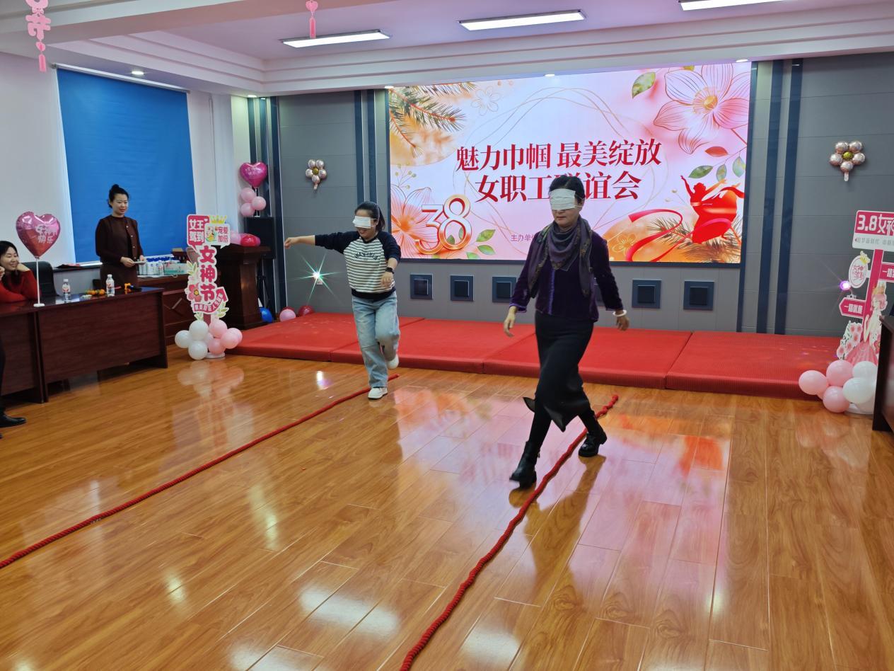 互動游戲環(huán)節(jié)同樣妙趣橫生,“桃花朵朵開”“漏框接氣球”“蒙眼走繩子”“蒙眼喝飲料”等趣味項目,讓女職工們暫時卸下工作壓力,在比拼中增進(jìn)情誼,在歡聲笑語中放松身心?,F(xiàn)場加油聲、喝彩聲此起彼伏,持續(xù)將活動氛圍推向高潮。