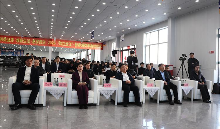 省商務廳二級巡視員趙福軍、哈爾濱市商務局市場運行和消費促進處處長王磊、省誠信建設促進會會長張波、省數(shù)字商務協(xié)會會長焦惠穎、哈爾濱市工商聯(lián)汽車商會名譽會長侯春海、會長許慧鵬等領導及嘉賓出席活動。來自汽車銷售、家電、數(shù)碼產(chǎn)品等領域的重點企業(yè)代表、新聞媒體記者等百余人參加啟動儀式。