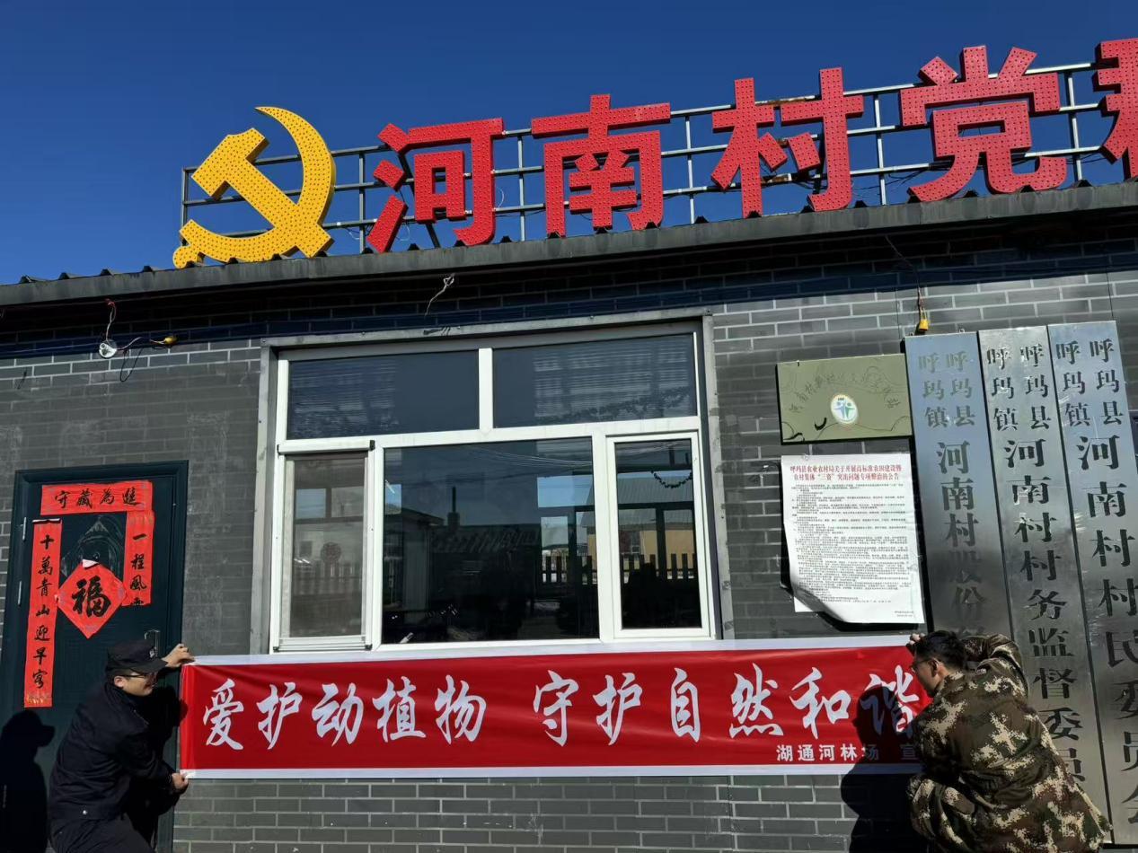 林場(chǎng)和派出所干警在村內(nèi)醒目位置懸掛“愛護(hù)動(dòng)植物 守護(hù)自然和諧”橫幅,喚起大家的共同保護(hù)意識(shí)?;怼吧鷳B(tài)宣傳員”,到村便民服務(wù)站,面對(duì)面為村民講解《野生動(dòng)物保護(hù)法》等法律法規(guī),結(jié)合典型案例剖析非法獵捕、交易野生動(dòng)植物的法律后果,細(xì)致解答群眾關(guān)于保護(hù)物種識(shí)別、舉報(bào)渠道等疑問。