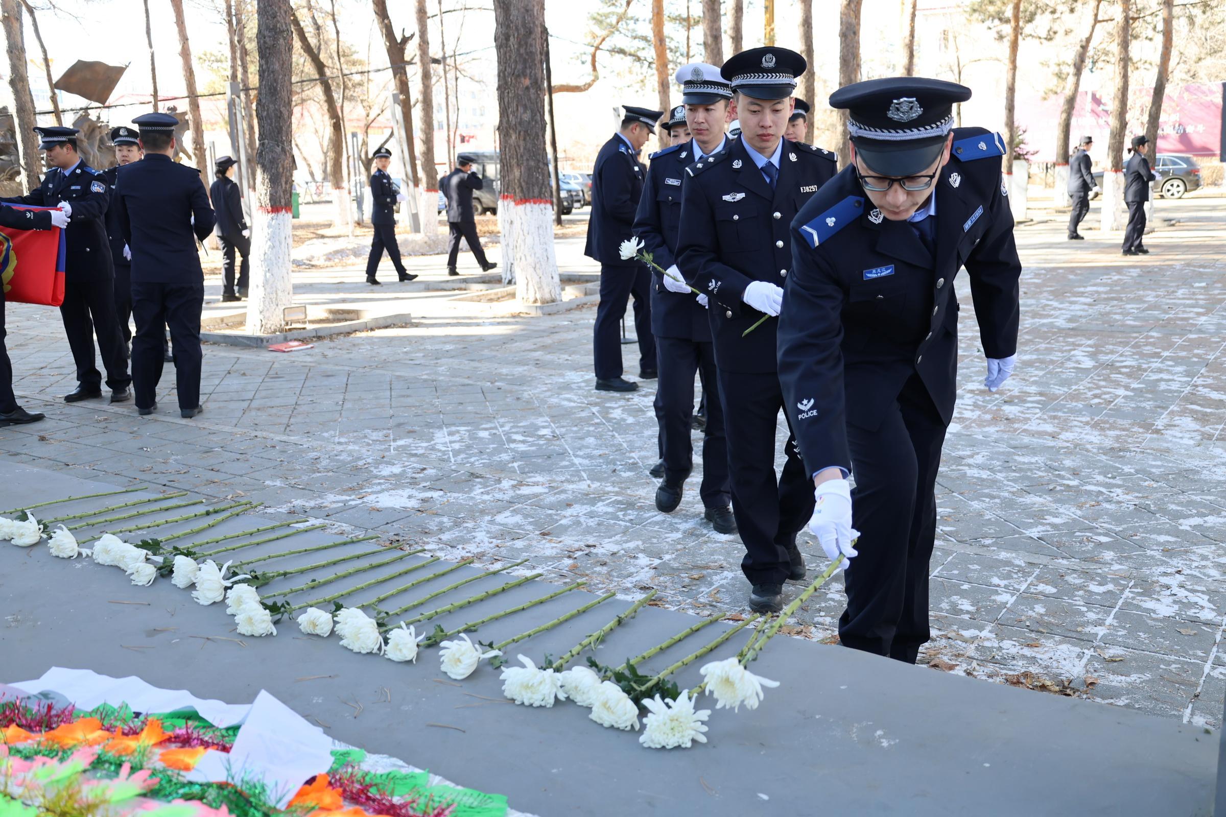 全體民輔警身著規(guī)范警服,精神抖擻、隊列整齊,懷著無比崇敬的心情肅立在紀念碑前,整個現(xiàn)場氛圍莊重而肅穆。