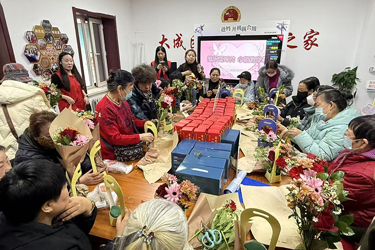 哈市南崗區(qū)大成街道新吉社區(qū)開展“情暖三月·花漾巾幗”主題插花活動(dòng)